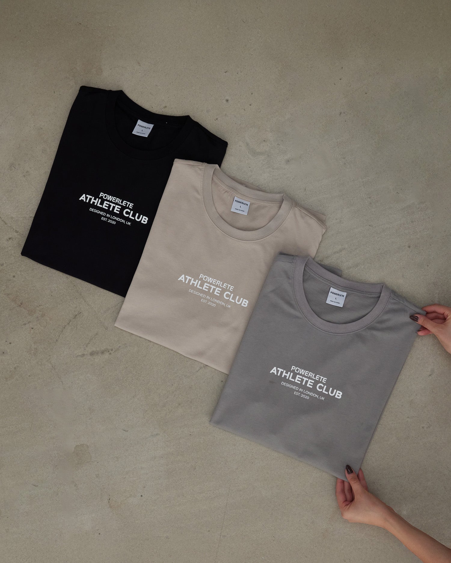 Gør opmærksom på dit klubtilhørsforhold. Omfavn det dristige Powerlete Athlete Club-branding på denne oversize t-shirt i en trendy kollegiestil i sæsonens farve, Sand. Vi præsenterer Powerlete Athlete Club-kollektionen, det ultimative must-have til din garderobe, fremstillet af 100 % genanvendt bomuld.