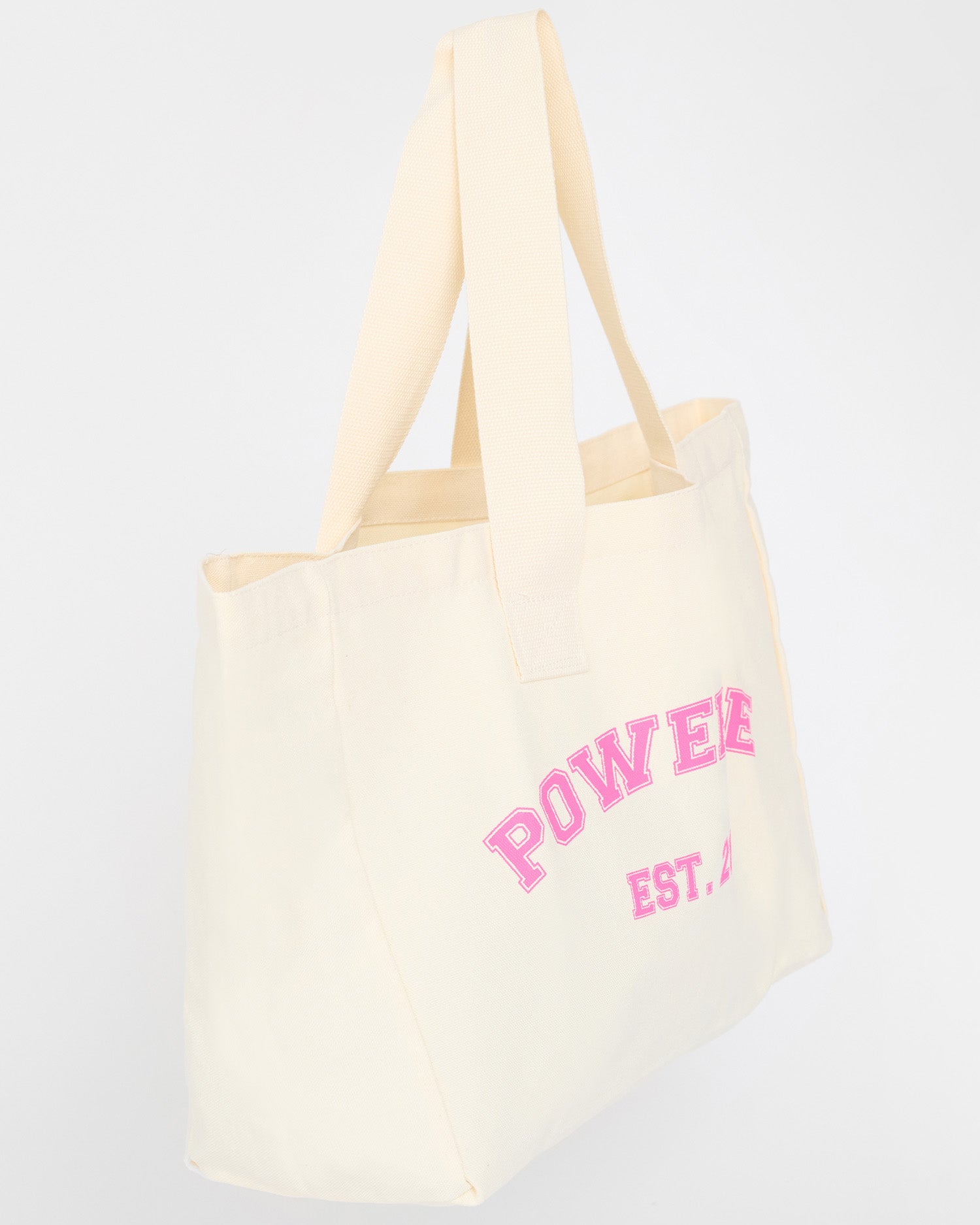 Darf ich vorstellen: die Powerlete Varsity Tote - dein neues Essential für jeden Tag. In neutralem Beige mit einem niedlichen, pinkfarbenen Varsity-Logo ist diese Tasche die perfekte Mischung aus Stil und Funktion. Egal, ob du ins Fitnessstudio gehst, Besorgungen machst oder ausgehst - diese Tasche macht alles mit, was du brauchst. Praktisch, strapazierfähig und mühelos cool, ist sie deine Lieblingstasche für alles, was der Tag so mit sich bringt.