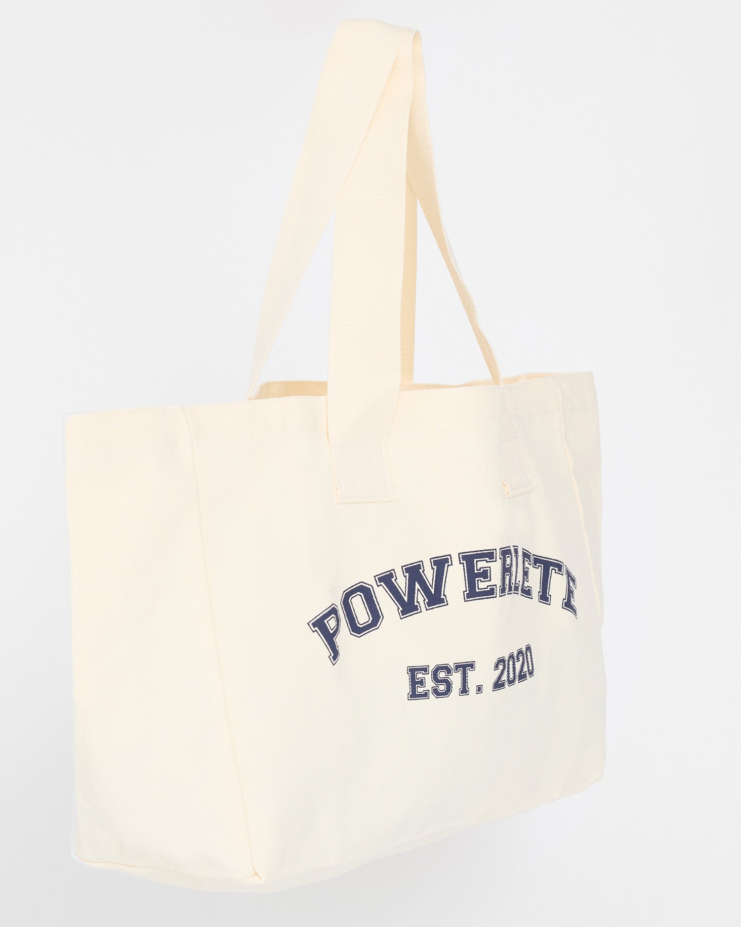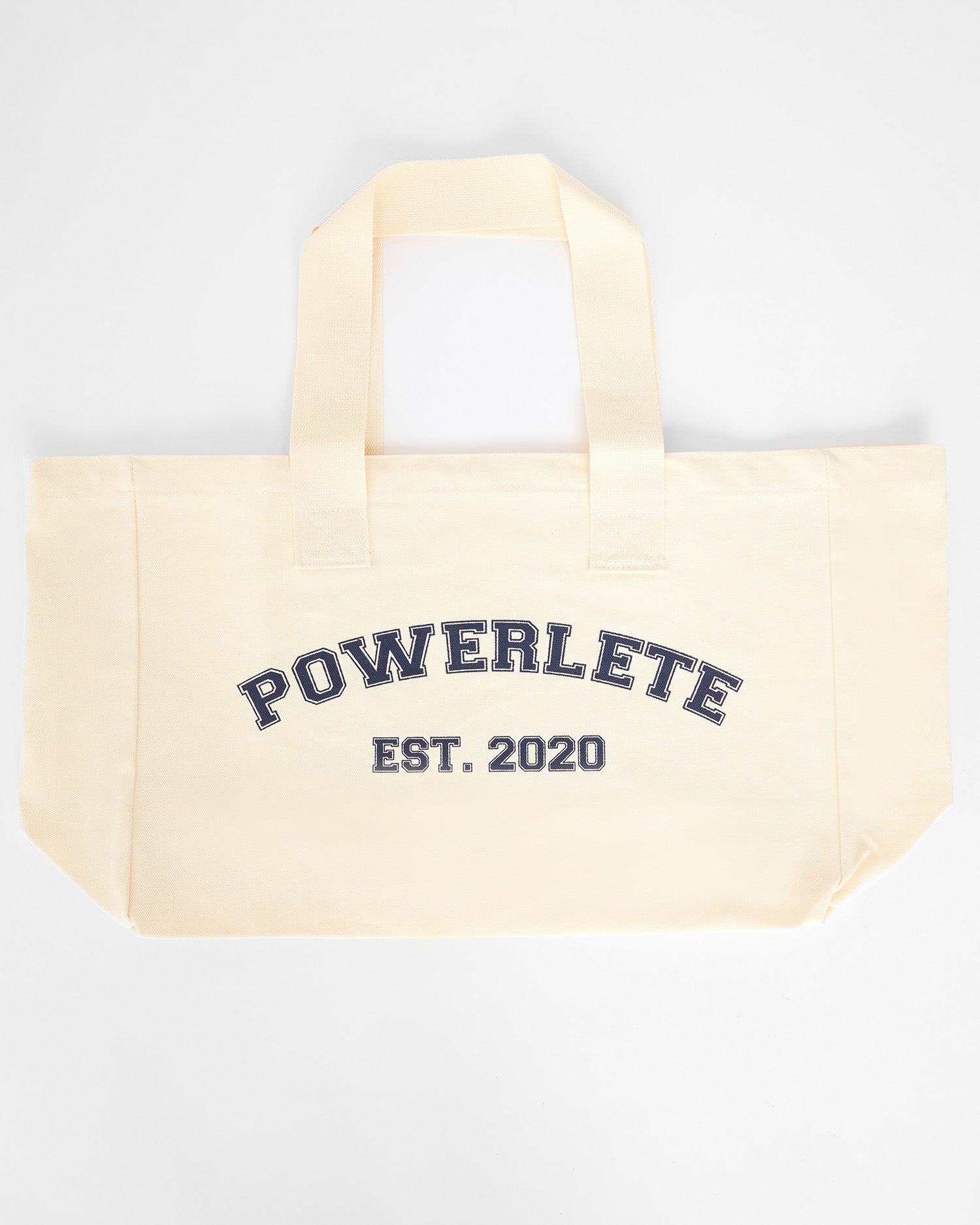 Maak kennis met de Powerlete Varsity Tote - je nieuwe dagelijkse essential. In neutraal beige met een opvallend navy varsity-logo is deze tas de perfecte mix van stijl en functie. Of je nu naar de sportschool gaat, boodschappen doet of uitgaat, hij is gemaakt om je drukke levensstijl bij te houden. Praktisch, duurzaam en moeiteloos cool, het is je go-to tas voor alles wat de dag met zich meebrengt.