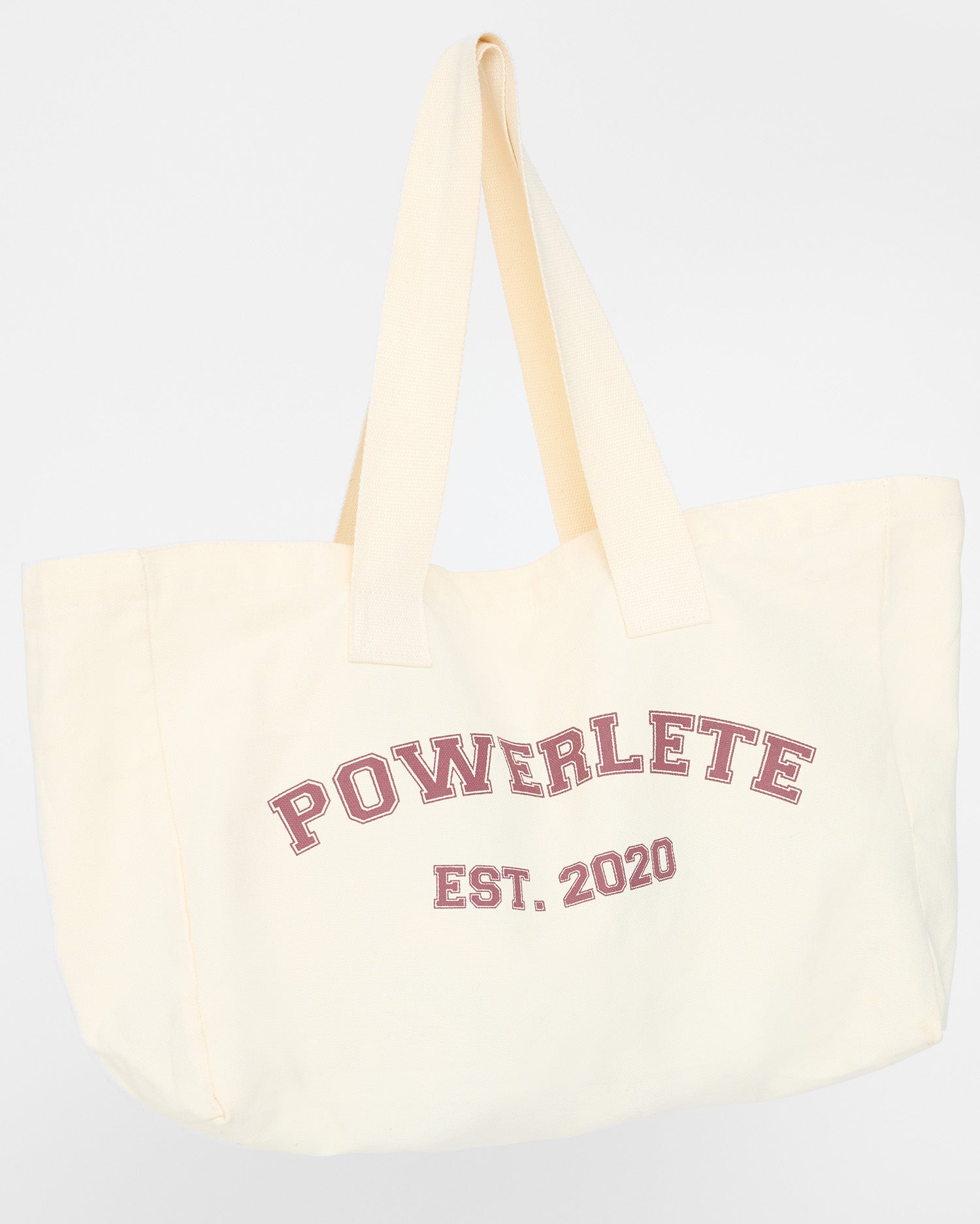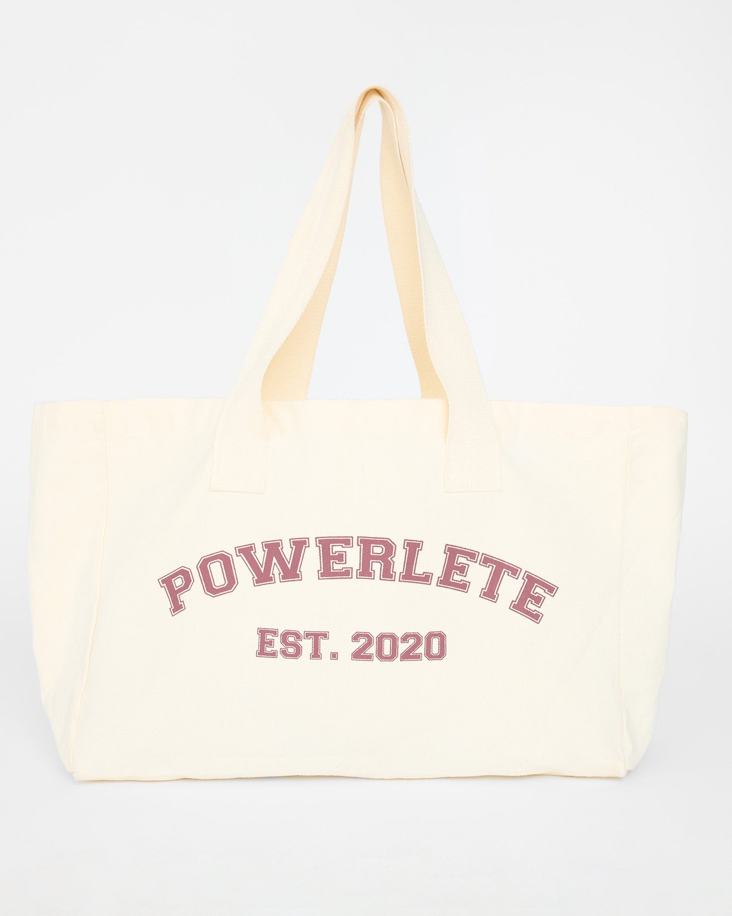 Möt Powerlete Varsity Tote - ditt nya vardagsnödvändiga plagg. I en neutral beige färg med en djärv körsbärsröd Varsity-logotyp är denna väska den perfekta blandningen av stil och funktion. Oavsett om du går på gymmet, gör ärenden eller går ut, är den byggd för att hålla jämna steg med din hektiska livsstil. Den är praktisk, slitstark och cool utan ansträngning och är din go-to väska för vad som än händer under dagen.